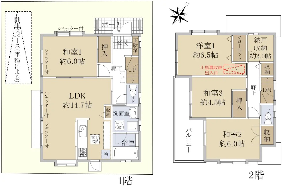| 備考 | カースペース(車種による) 土地面積:110.17㎡他に私道負担15.28㎡とごみ置場0.29㎡あり |